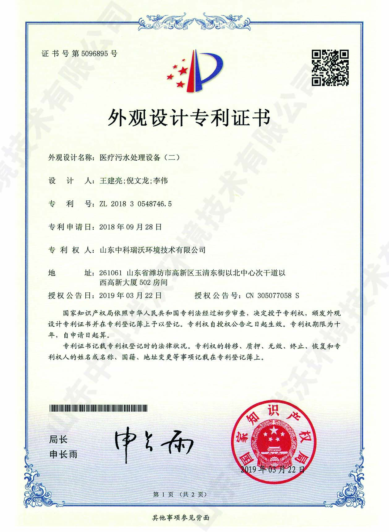 實驗室污水處理設備~外觀專利